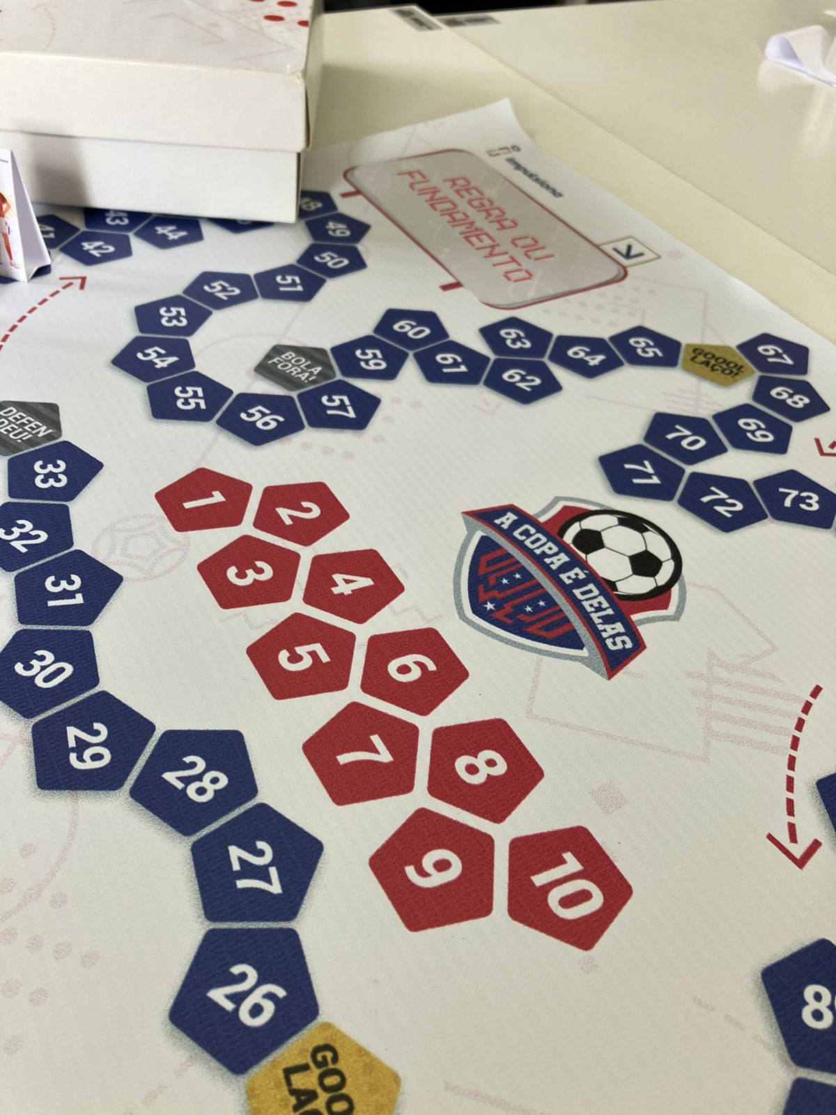 O jogo de tabuleiro envolve perguntas, respostas e desafios com bola, e foi pensado para professoras e professores que desejam trabalhar o tema da copa durante as aulas e aumentar a visibilidade do futebol feminino, ampliando o olhar das crianças e adolescentes sobre as questões de gênero no esporte.